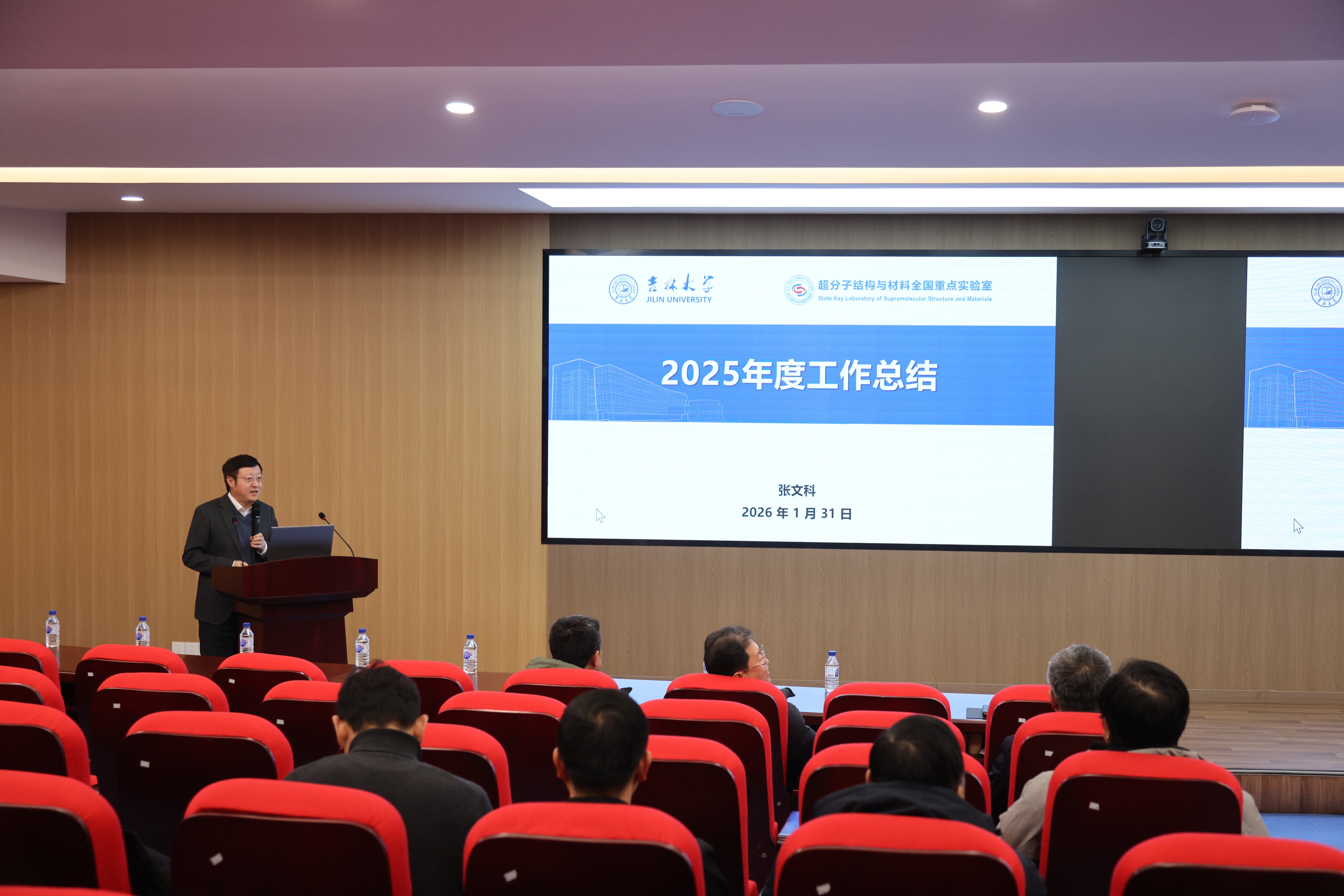 【新闻来源:超分子结构与材料全国重点实验室】2026年1月31日,超分子结构与材料全国重点实验室2025年度工作总结暨学术报告会议在吉林大学中心校区召开。吉林大学校长张希,实验室学术委员会委员、中国科学院长春应用化学研究所研究员陈学思出席会议并作讲话。吉林大学化学学院院长李乙,实验室主任张文科,副主任吕中元、张俊虎、吴光鹭、梁龙琪,以及近百位实验室固定成员齐聚一堂、共谋发展。